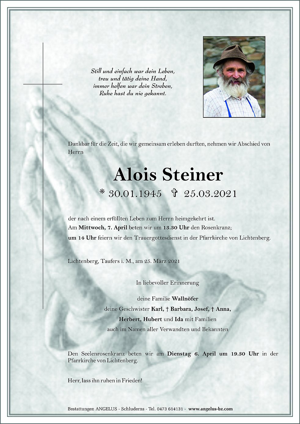 Bestattungen ANGELUS - Schluderns - Tel. 0473 614131 - www.angelus-bz.com