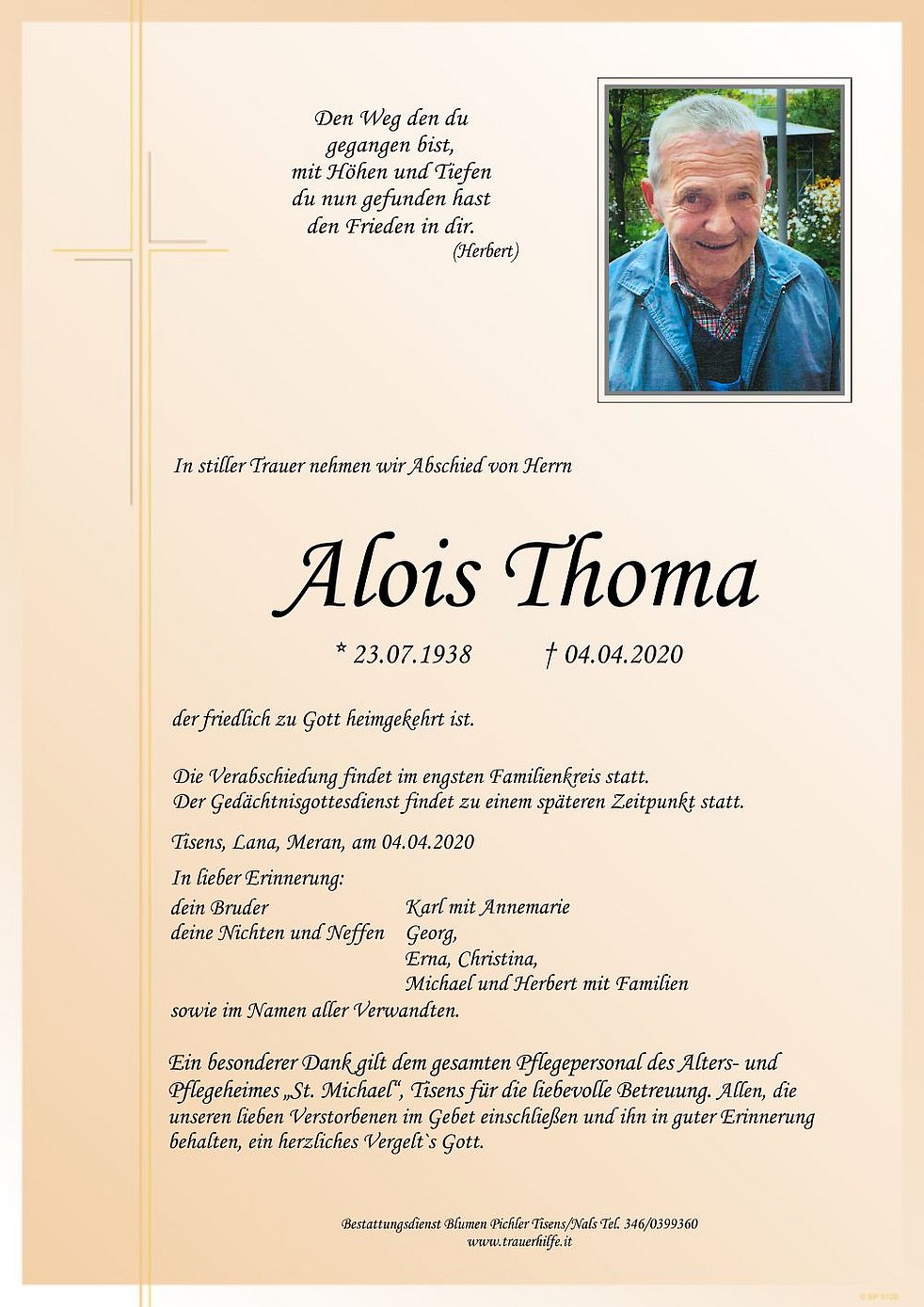 Pflegeheimes „St. Michael“, Tisens für die liebevolle Betreuung. Allen, die