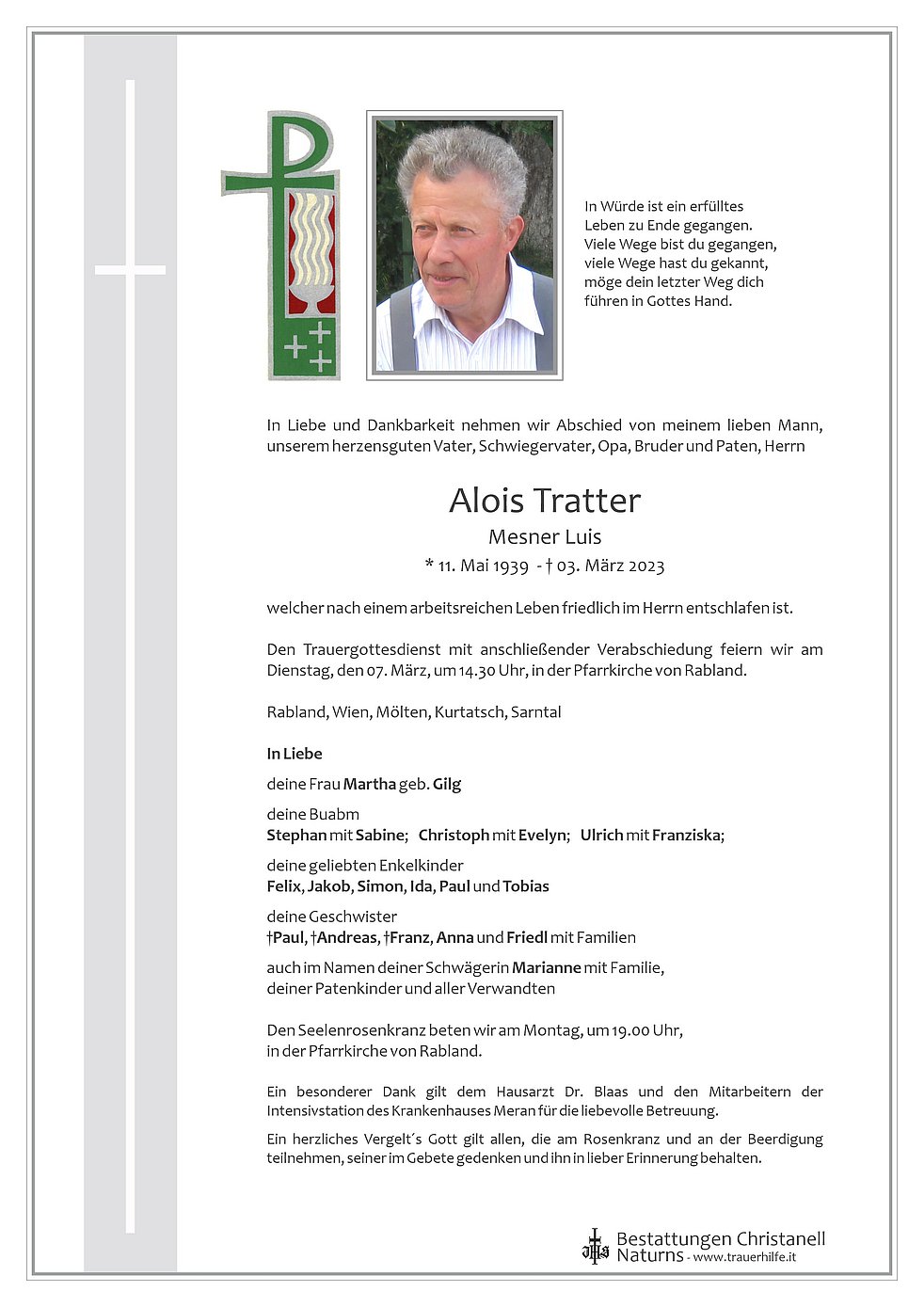 Den Trauergottesdienst mit anschließender Verabschiedung feiern wir am Dienstag, den 07. März, um 14.30 Uhr, in der Pfarrkirche von Rabland.