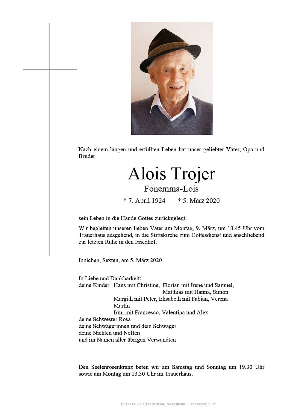 Wir begleiten unseren lieben Vater am Montag, 9. März, um 13.45 Uhr vom Trauerhaus ausgehend, in die Stiftskirche zum Gottesdienst und anschließend zur letzten Ruhe in den Friedhof.