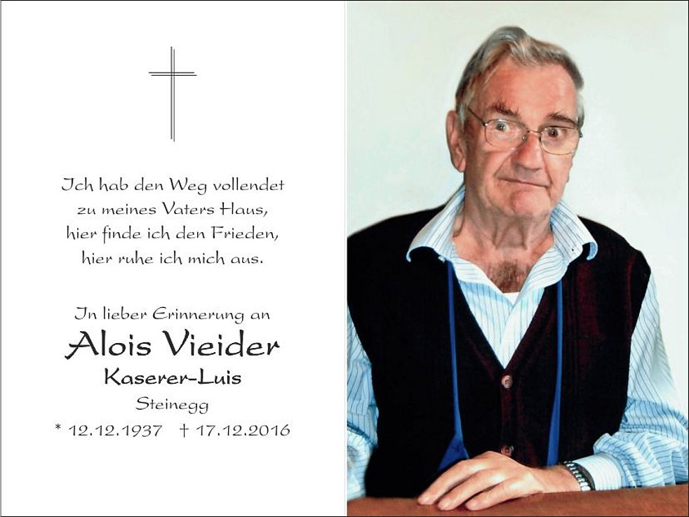 20. Dezember, um 14.30 Uhr in der Pfarrkirche von Steinegg.