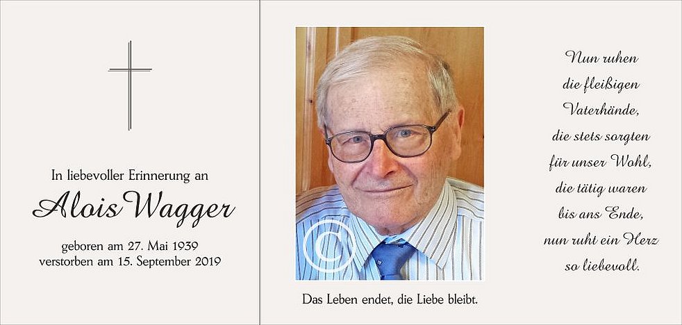 Vergelt‘s Gott allen, die an den Seelenrosenkränzen und an der Beerdigung von unserem lieben Tata teilnehmen und ihn in guter Erinnerung behalten.