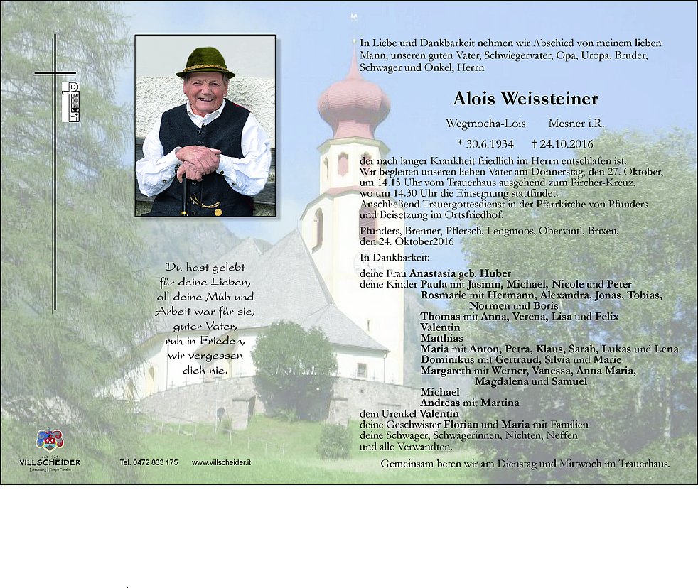 um 14.15 Uhr vom Trauerhaus ausgehend zum Pircher-Kreuz,