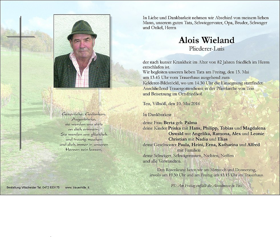 Wir begleiten unseren lieben Tata am Freitag, den 13. Mai
