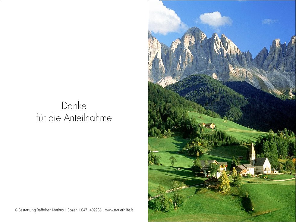 Ein besonderer Dank gilt den Ärzten und dem Pflegepersonal der Abteilung allgemeine Chirurgie vom KH-Bozen für die liebevolle Betreuung.