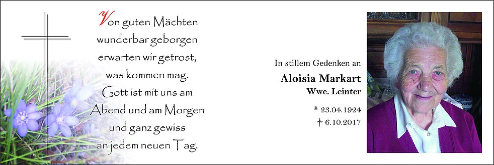 die im 94. Lebensjahr zu Gott heimgekehrt ist.