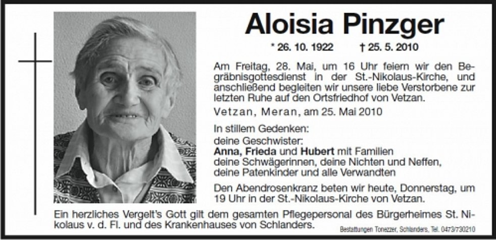 St. Nikolaus-Kirche und anschließend begleiten wir unsere liebe Verstorbene zur letzten Ruhe auf den Ortsfriedhof von Vetzan.