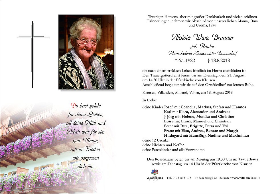 Traurigen Herzens, aber mit großer Dankbarkeit und vielen schönen Erinnerungen, nehmen wir Abschied von unserer lieben Mama, Oma