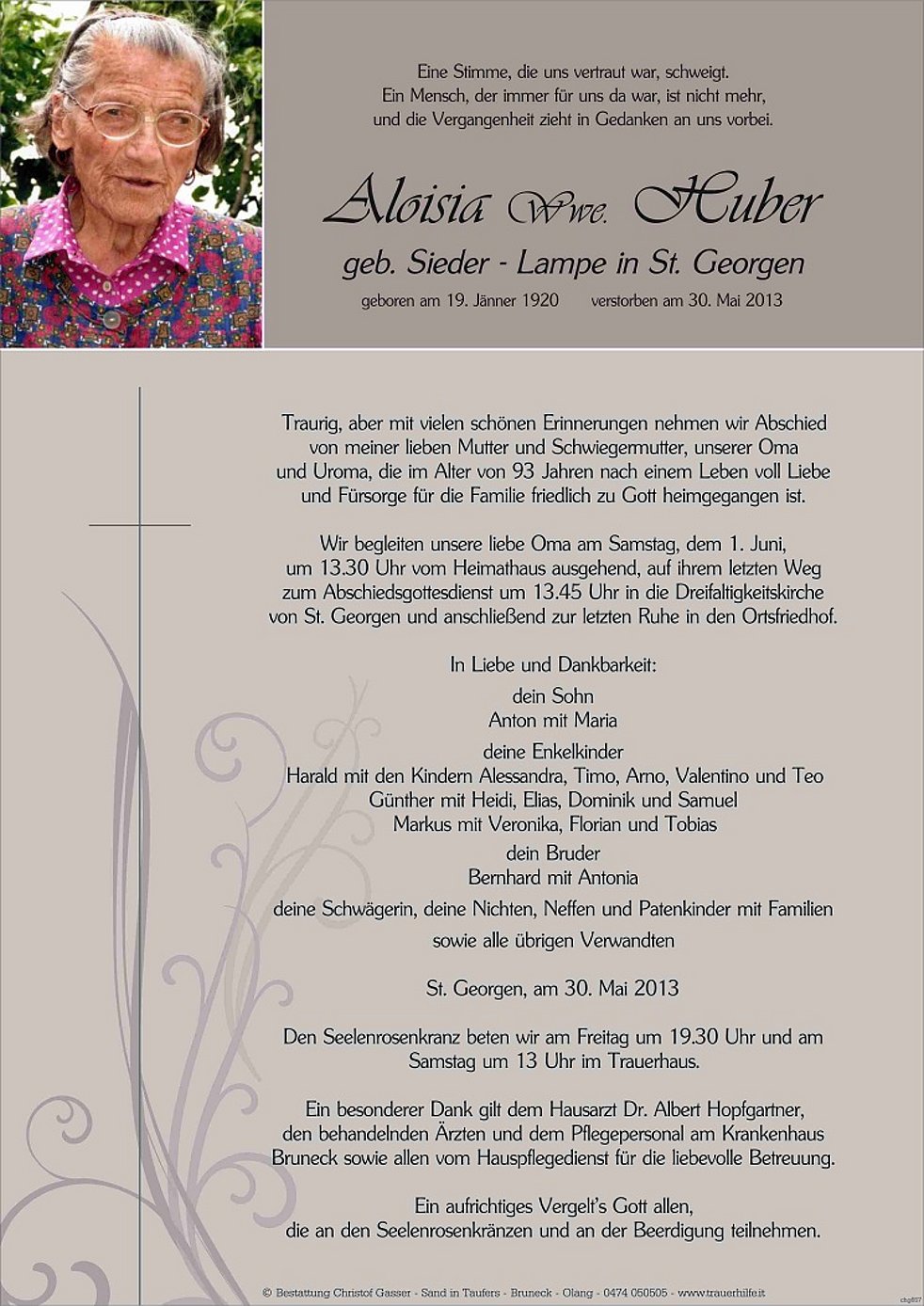 geboren am 19. Jänner 1920 verstorben am 30. Mai 2013