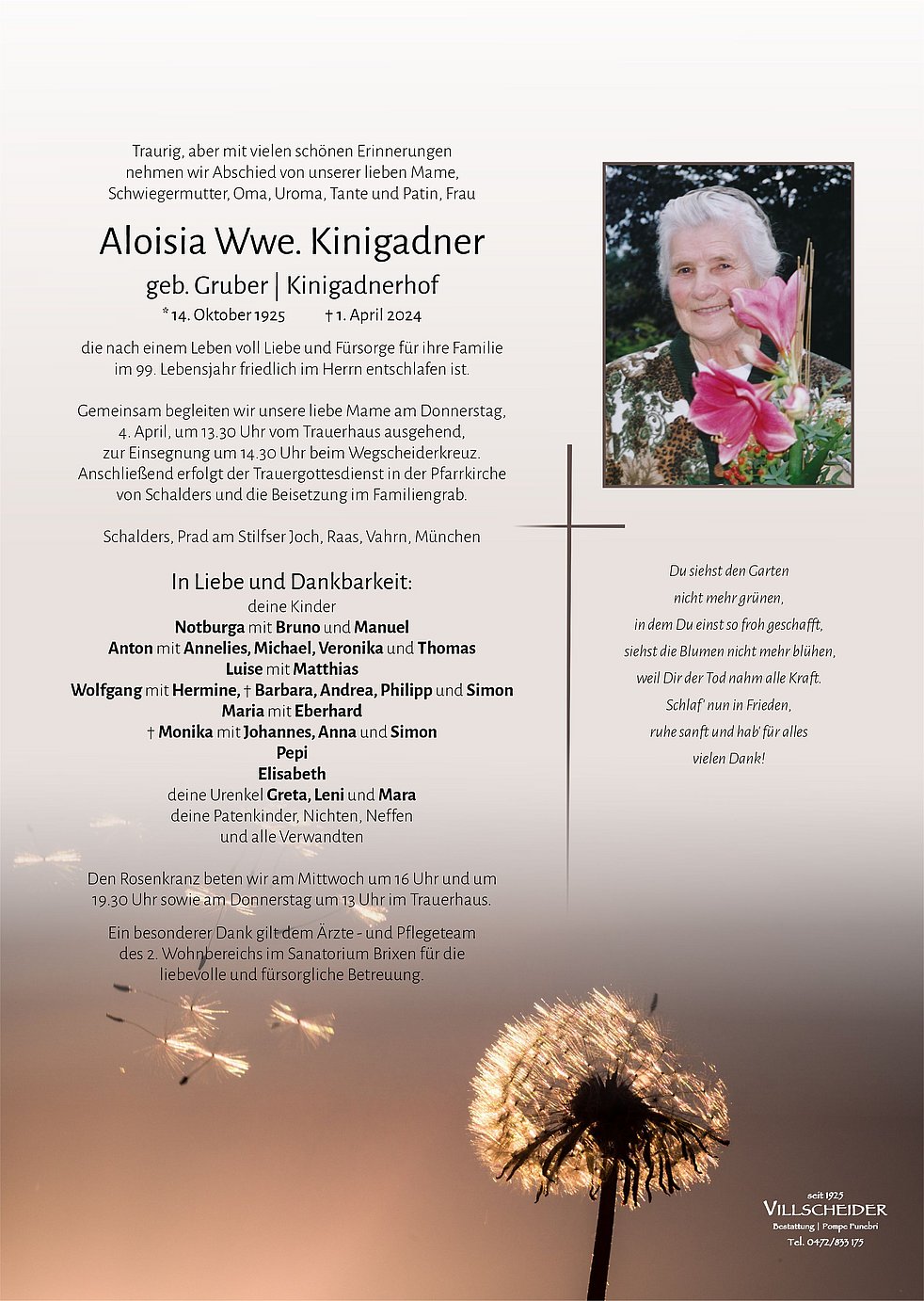 Zum Heimgang eurer lieben Mutter/ Oma wünschen wir euch viel Kraft in dieser Zeit.
