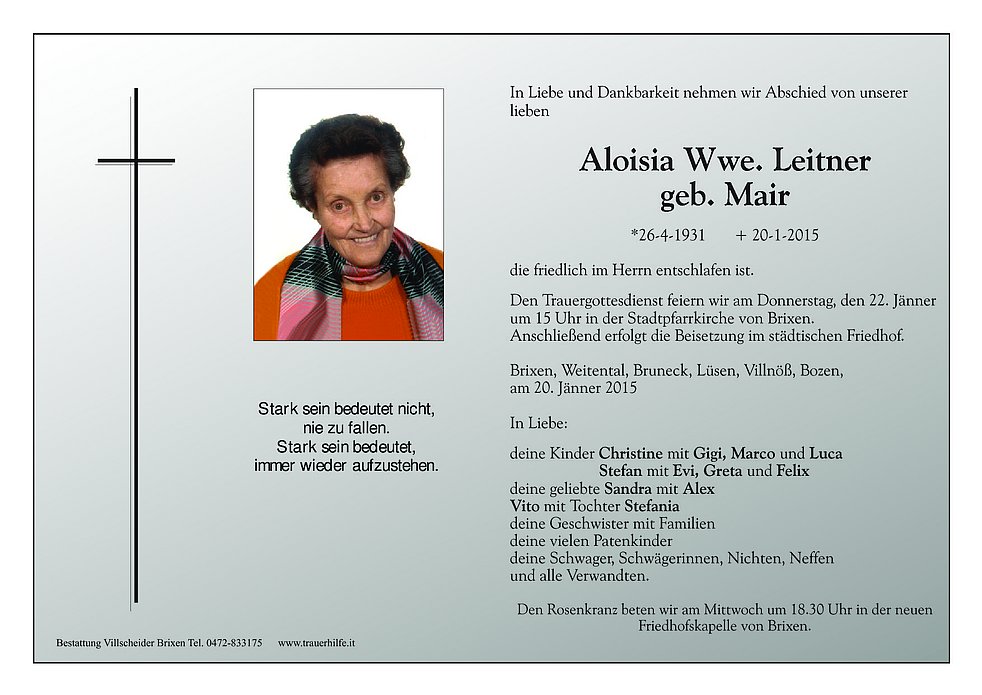 Den Trauergottesdienst feiern wir am Donnerstag, den 22. Jänner