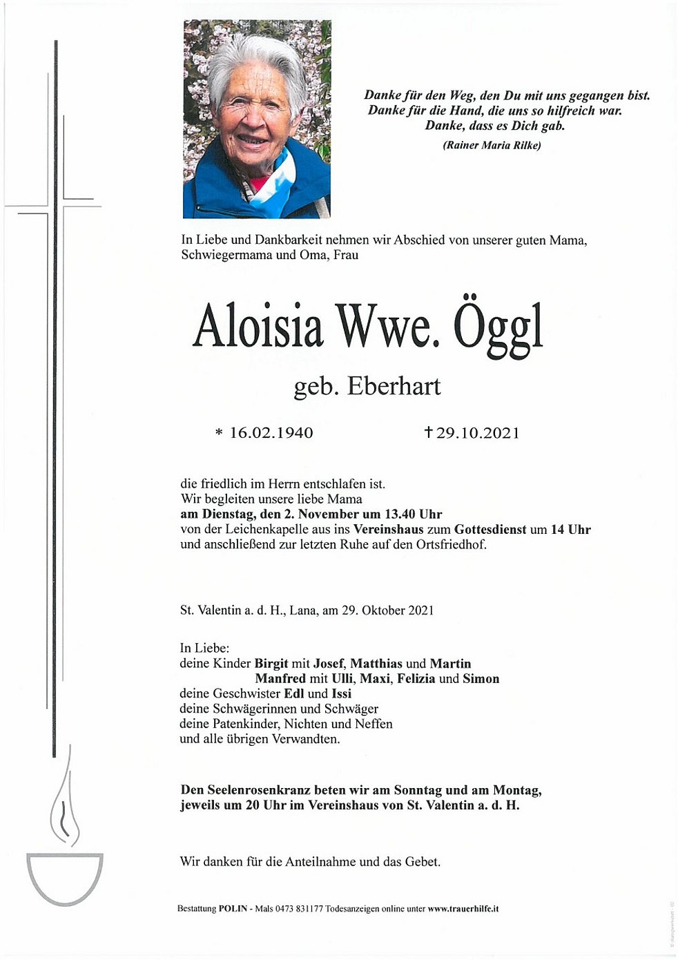 In Liebe und Dankbarkeit nehmen wir Abschied von unserer guten Mama,