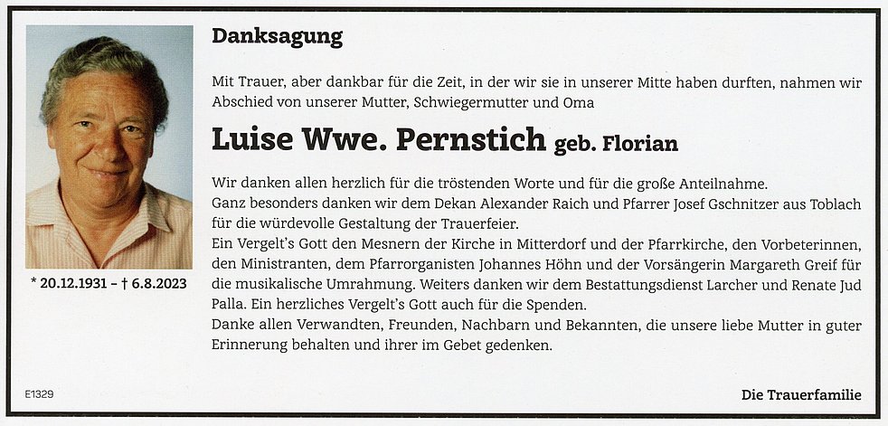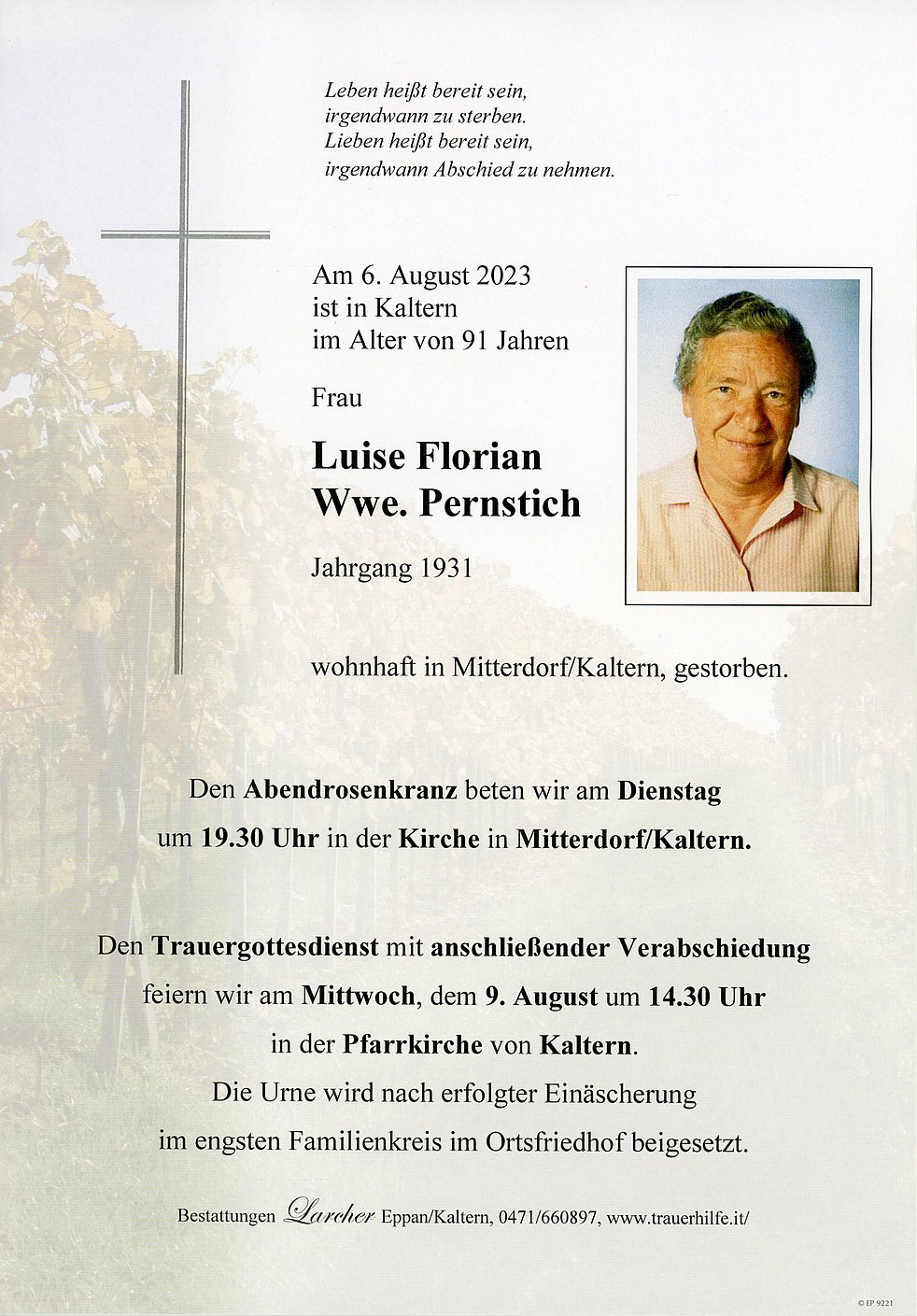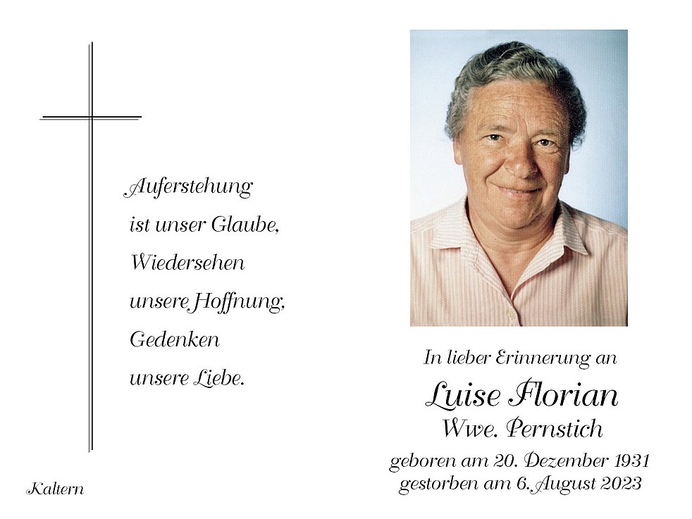 Den Trauergottesdienst mit anschließender Verabschiedung feiern wir am Mittwoch, dem 9. August um 14.30 Uhr in der Pfarrkirche von Kaltern.