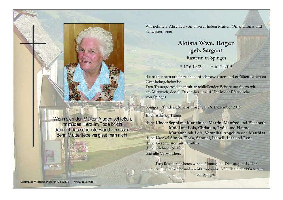 die nach einem arbeitsreichen, pflichtbewussten und erfüllten Leben zu Gott heimgekehrt ist.