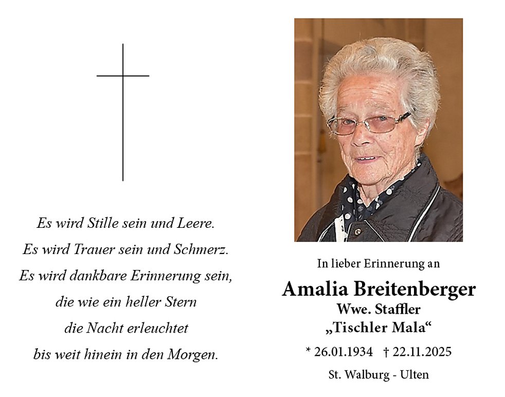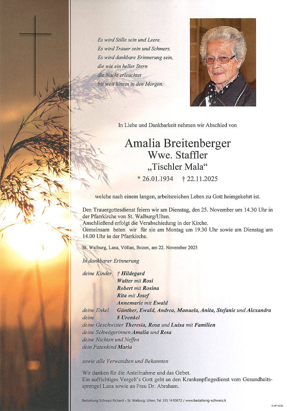 Den Trauergottesdienst feiern wir am Dienstag, den 25. November um 14.30 Uhr in der Pfarrkirche von St. Walburg/Ulten.