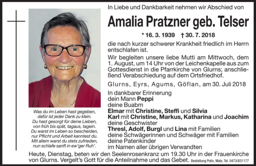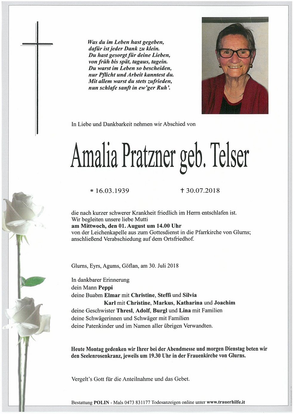 Vergelt’s Gott für die Anteilnahme und das Gebet.