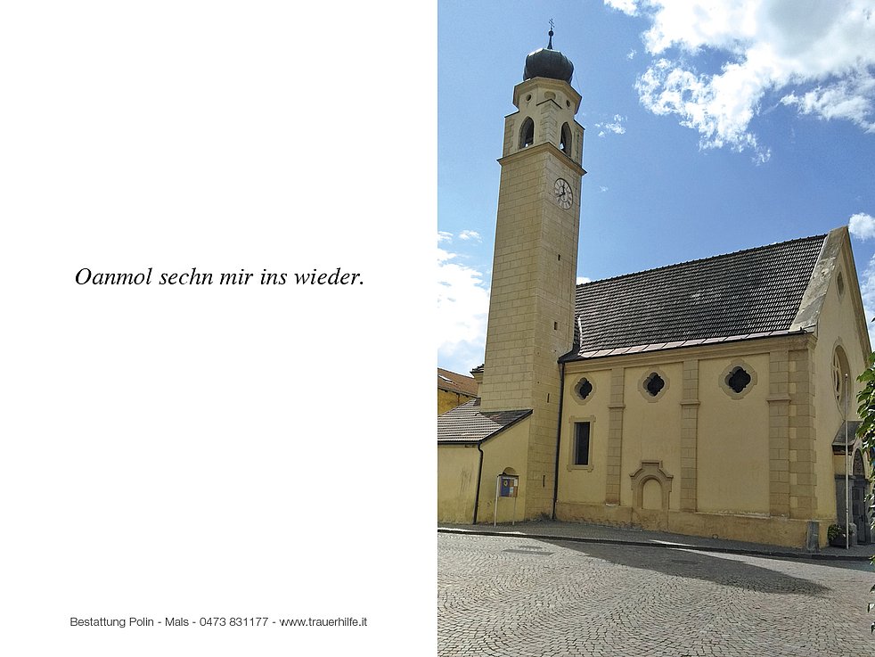 den Seelenrosenkranz, jeweils um 19.30 Uhr in der Frauenkirche von Glurns.