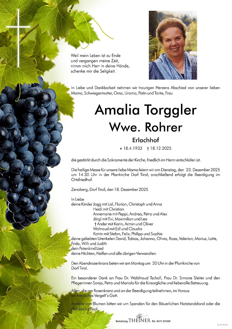 Die heilige Messe für unsere liebe Mama feiern wir am Dienstag, den 23. Dezember 2025 um 14.30 Uhr in der Pfarrkirche Dorf Tirol; anschließend erfolgt die Beerdigung im Ortsfriedhof.