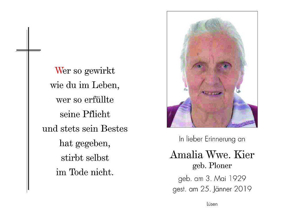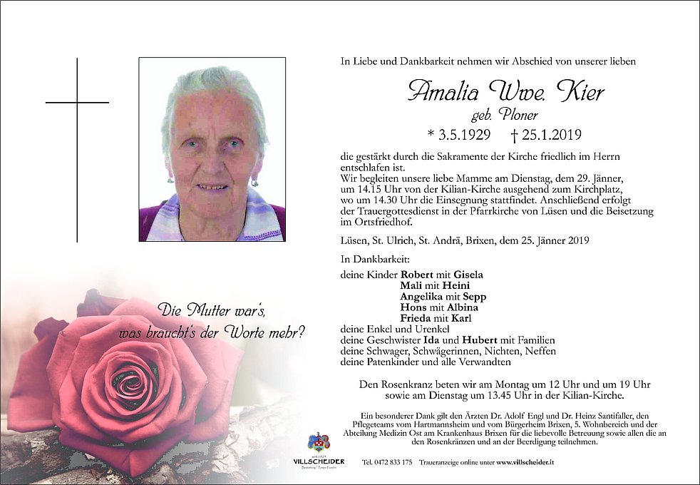Begräbnisgottesdienst: 29.01. - 14:30 Uhr Lüsen