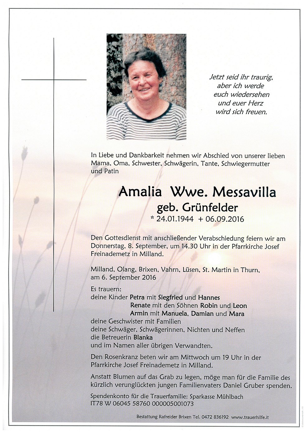 Anstatt Blumen auf das Grab zu legen, möge man für die Familie des kürzlich verunglückten jungen Familienvaters Daniel Gruber spenden.