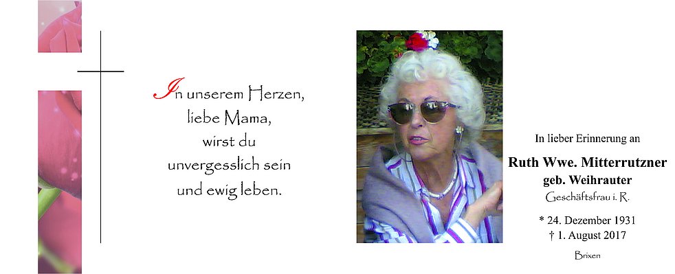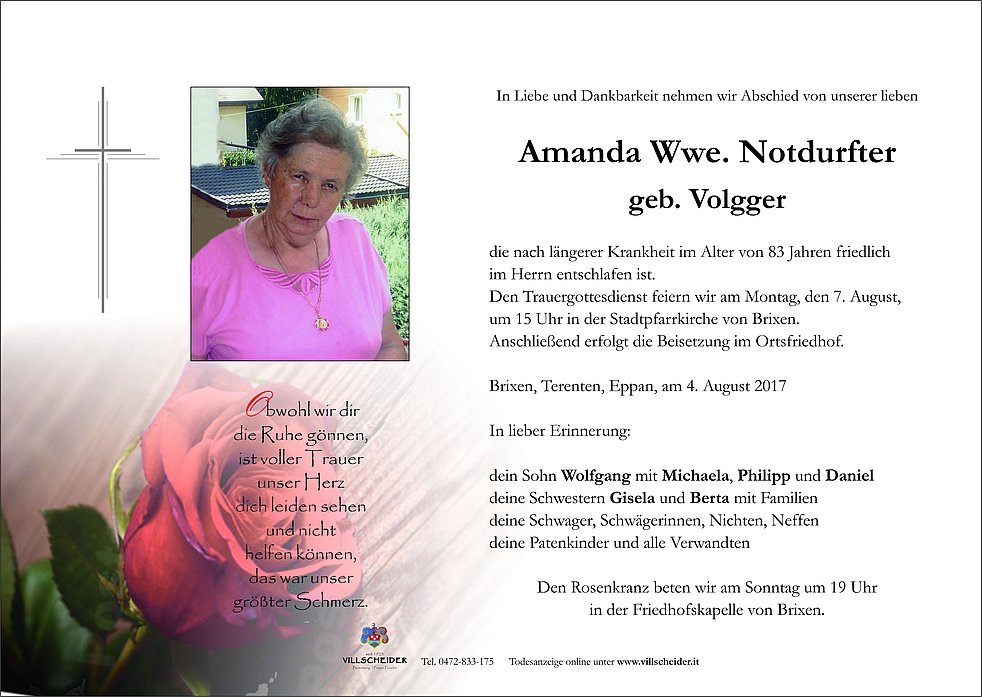 Den Trauergottesdienst feiern wir am Montag, den 7. August, um 15 Uhr in der Stadtpfarrkirche von Brixen.