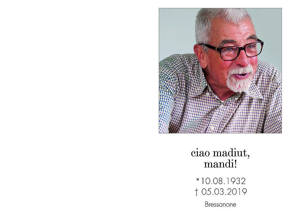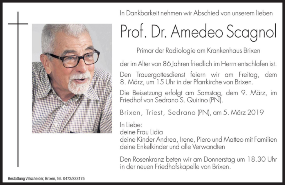 Begräbnisgottesdienst: 08.03. - 15:00 Uhr Brixen