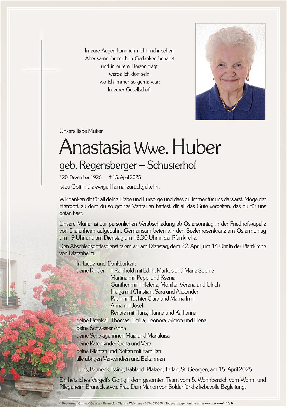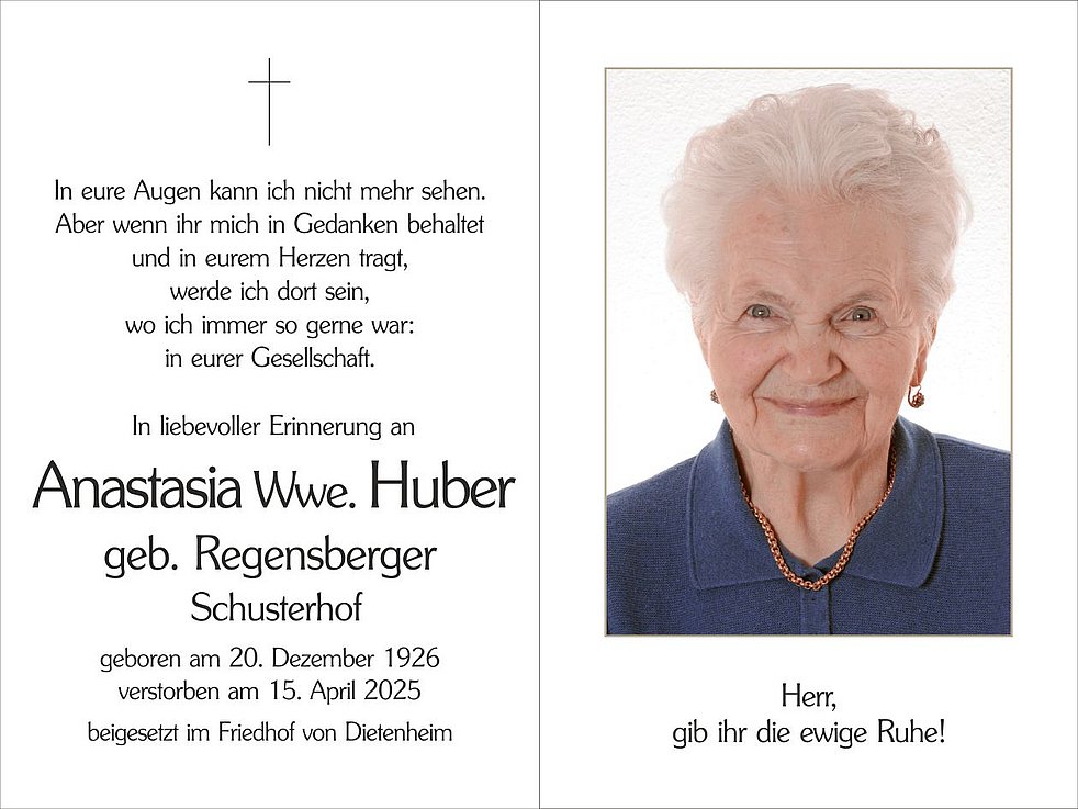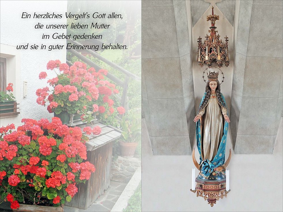 Unsere Mutter ist zur persönlichen Verabschiedung ab Ostersonntag in der Friedhofskapelle von Dietenheim aufgebahrt.
