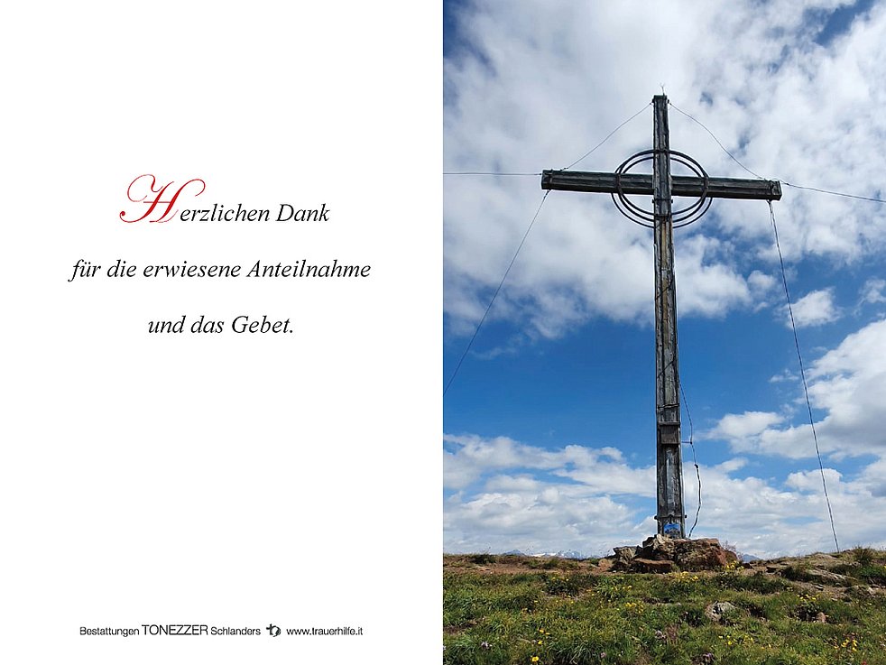 Ein besonderer Dank gilt dem gesamten Team vom Altenheim Annenberg Latsch sowie der Abteilung Medizin des Krankenhauses von Schlanders für die liebevolle und fürsorgliche Betreuung.