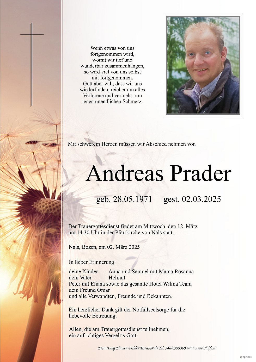 Mein aufrichtiges Beileid an die gesamte Familie, insbesondere an seine Frau Rosanna und den Kindern Anna und Samuel. Andreas war ein wirklich lieber Mensch. Viel Kraft in dieser schweren Zeit wünsche ich Euch Allen von ganzem Herzen.