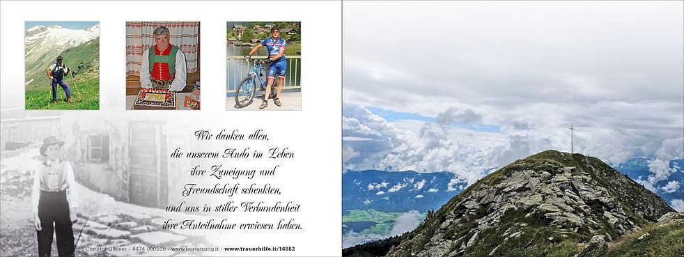 Ein herzlicher Dank gilt der Hausärztin Dr. Berta Marcher und allen behandelnden Ärzten sowie dem Pflegepersonal am Krankenhaus Brixen und Bruneck. Besonders bedanken wir uns bei seinem Freund Dr. Rudolf Gruber.