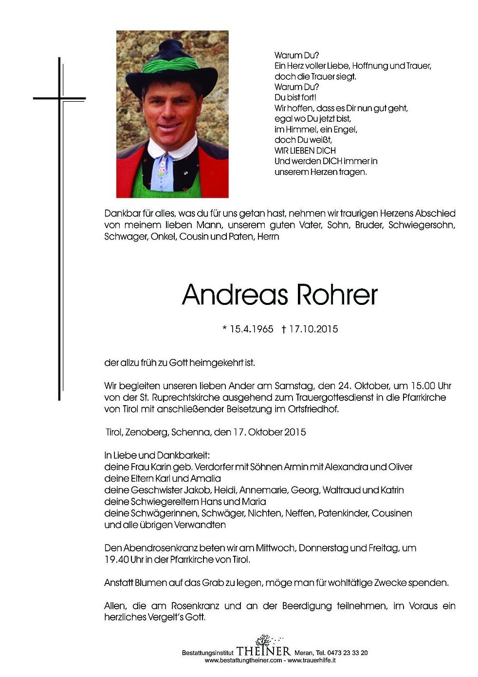 von Tirol mit anschließender Beisetzung im Ortsfriedhof.
