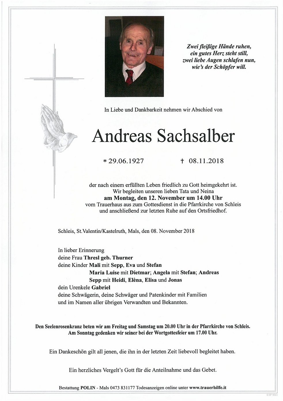 Am Sonntag gedenken wir seiner bei der Wortgottesfeier um 17.00 Uhr.