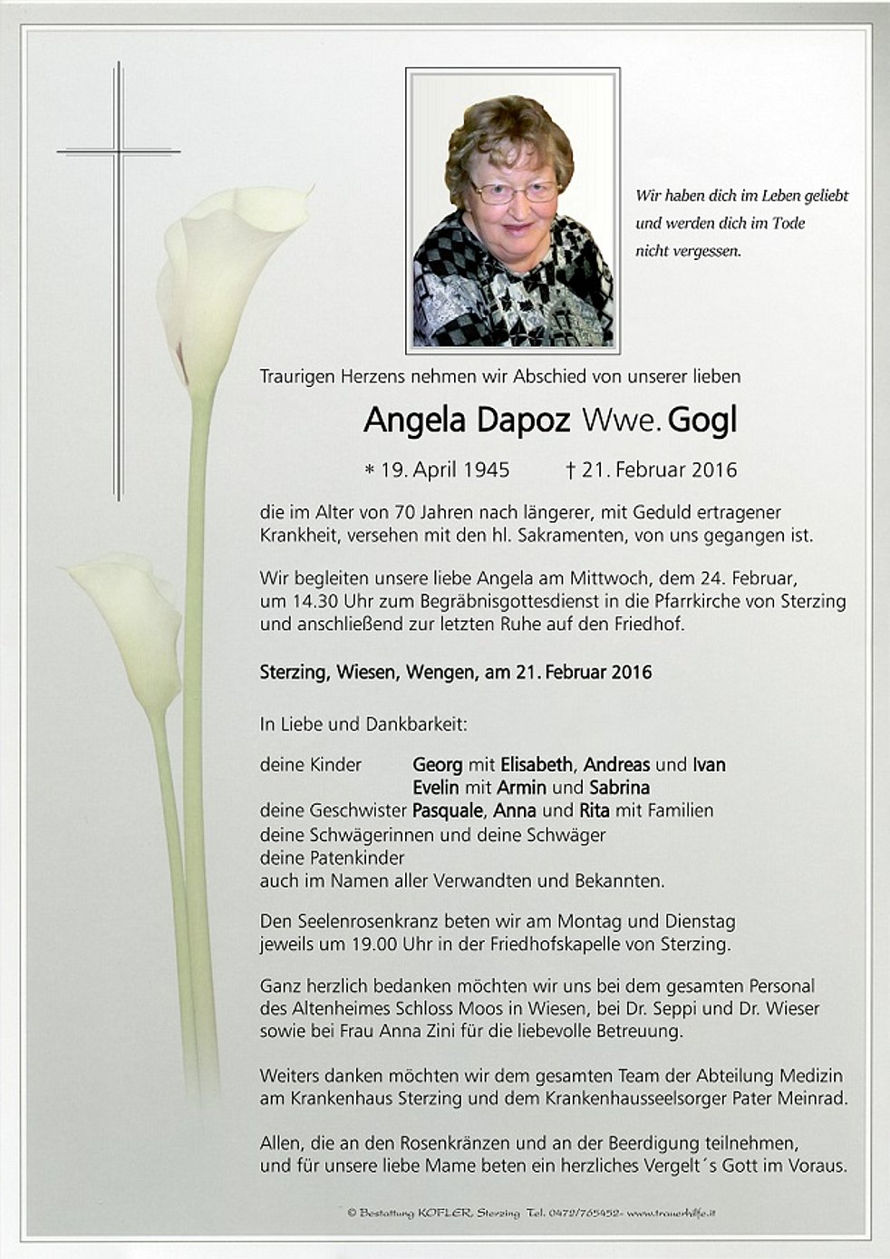 Wir begleiten unsere liebe Angela am Mittwoch, dem 24. Februar,