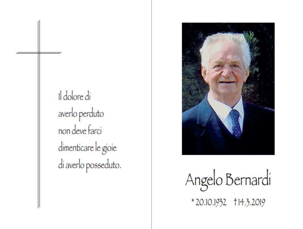 Wir begleiten unseren lieben Angelo am Samstag, dem16. März, um 14.30 Uhr von der Friedhofskapelle ausgehend, zum Gottesdienst in die Pfarrkirche von Wolkenstein; anschließend findet die Verabschiedung im Ortsfriedhof statt.