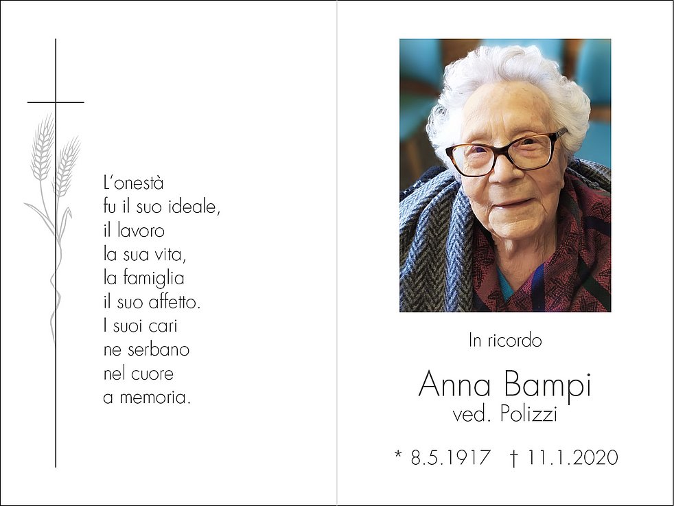 Un sentito ringraziamento a tutti coloro che ricorderanno la nostra cara mamma nelle loro preghiere e a tutto il personale assistenziale del Jesuheim di Cornaiano per le amorevoli cure prestate.