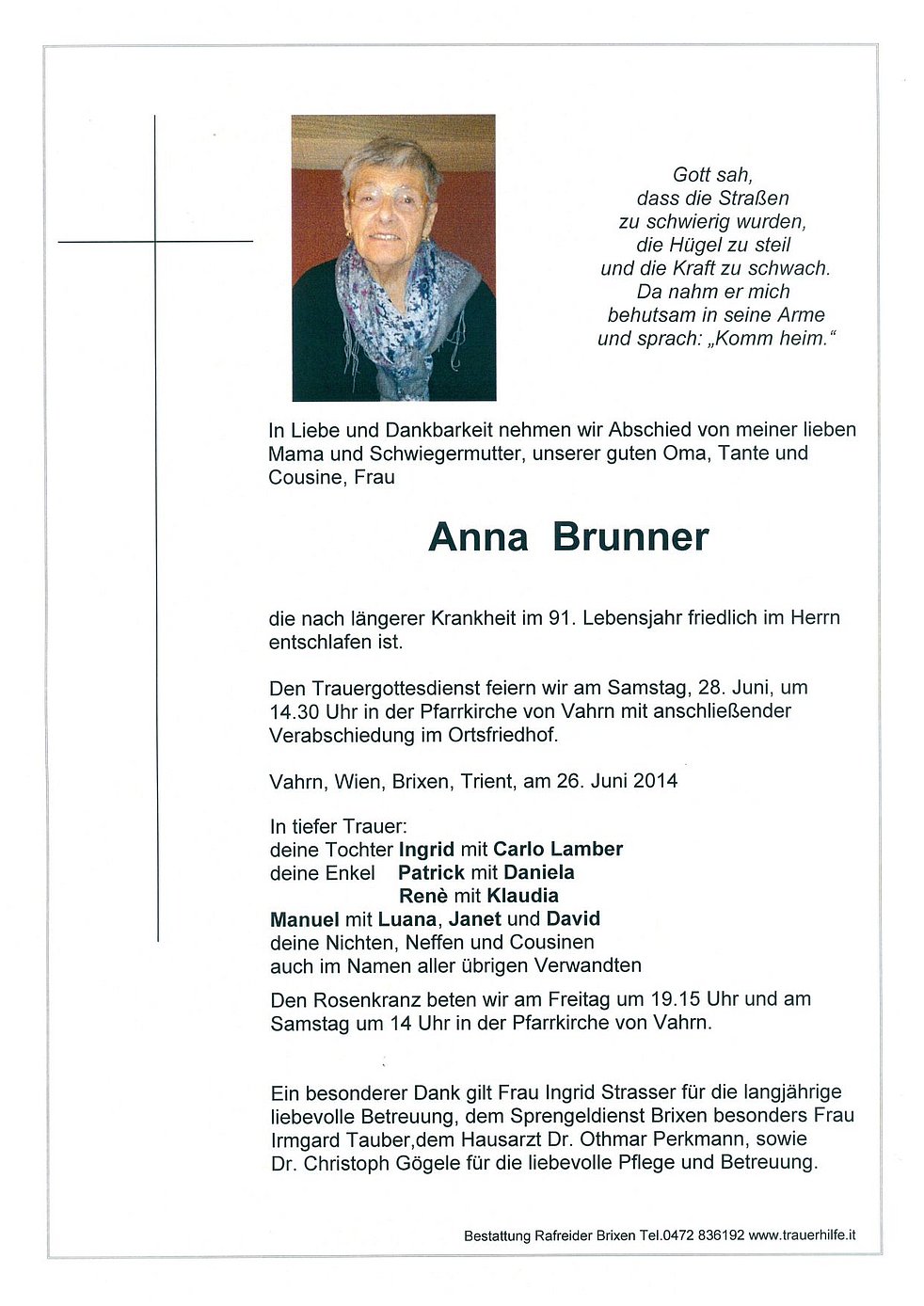 Den Trauergottesdienst feiern wir am Samstag, 28. Juni, um 14.30 Uhr in der Pfarrkirche von Vahrn mit anschließender Verabschiedung im Ortsfriedhof.