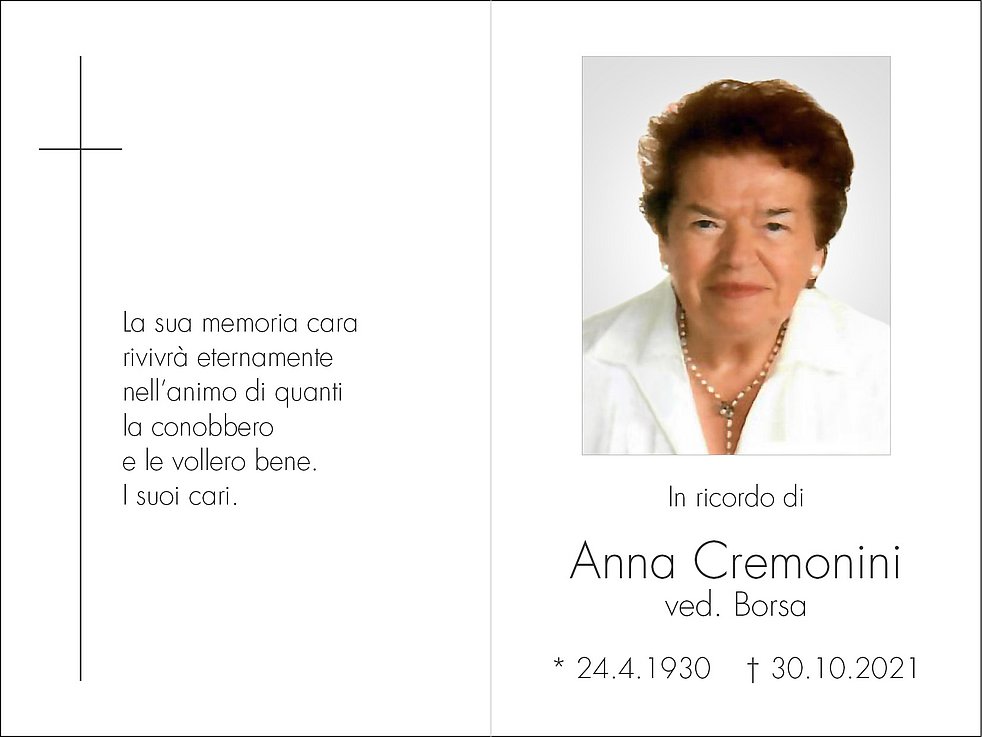 La S. Messa in suffragio verrà celebrata venerdì, 5 novembre alle ore 11.00 nella chiesa parrocchiale San Pio X, indi la nostra cara verrá cremata.
