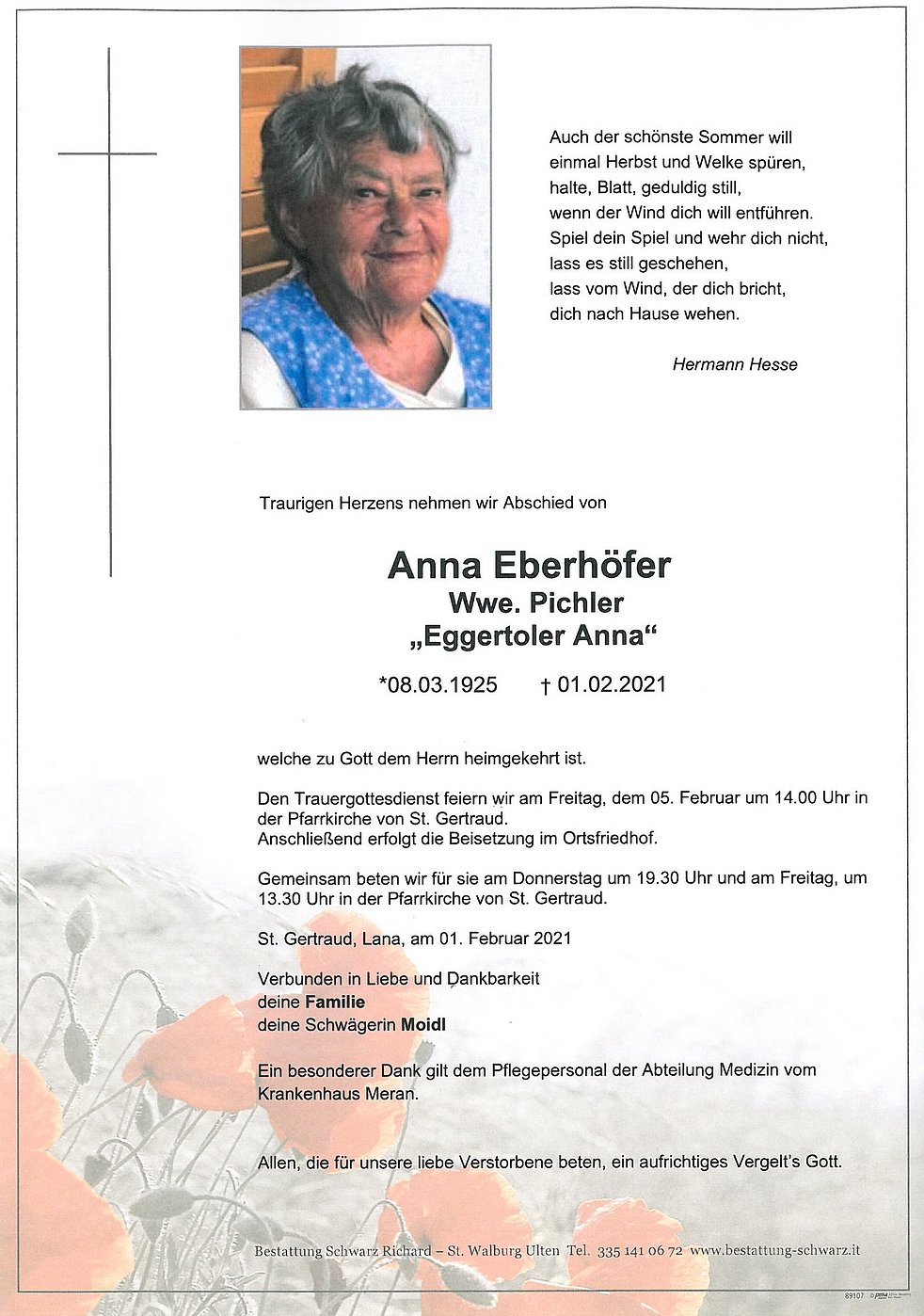 Den Trauergottesdienst feiern wir am Freitag, dem 05. Februar um 14.00 Uhr in der Pfarrkirche von St. Gertraud.