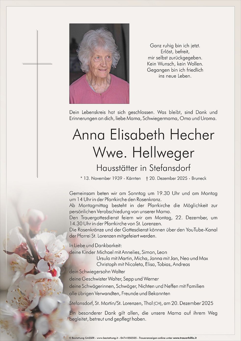"Alles hat seine Zeit. Es gibt eine Zeit der Freude, eine Zeit der Stille. Eine Zeit des Schmerzes, der Trauer und eine Zeit der dankbaren Erinnerungen."