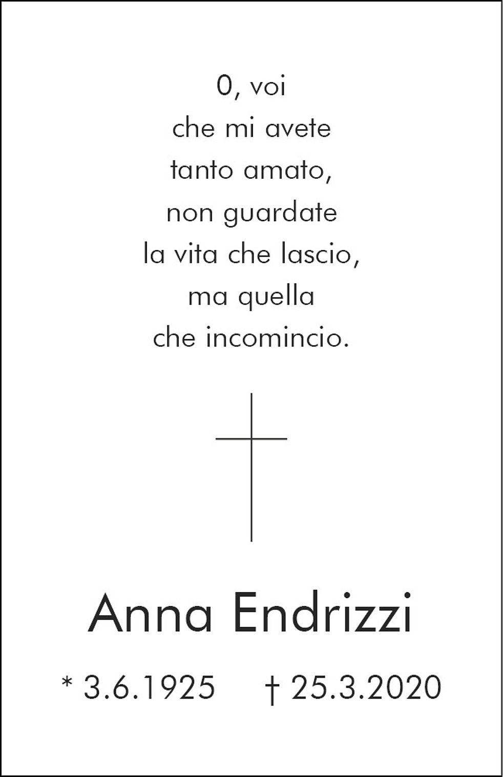 Ne danno il triste annuncio il fratello Giuseppe con Anna Maria, il cognato Roland, nipoti, pronipoti e parenti tutti.