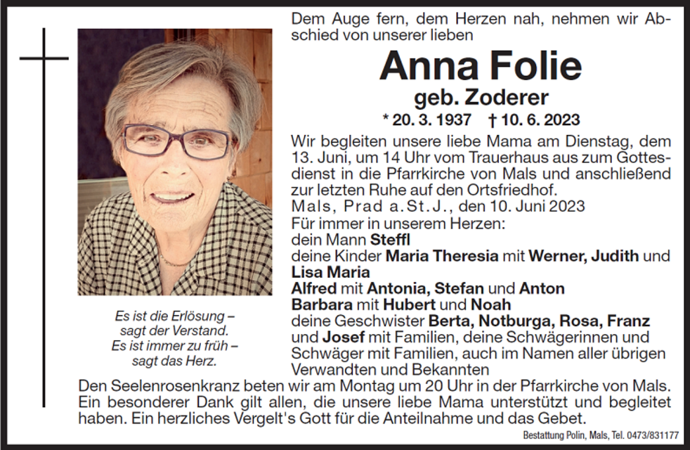 Ein herzliches Vergelt‘s Gott für die Anteilnahme und das Gebet.