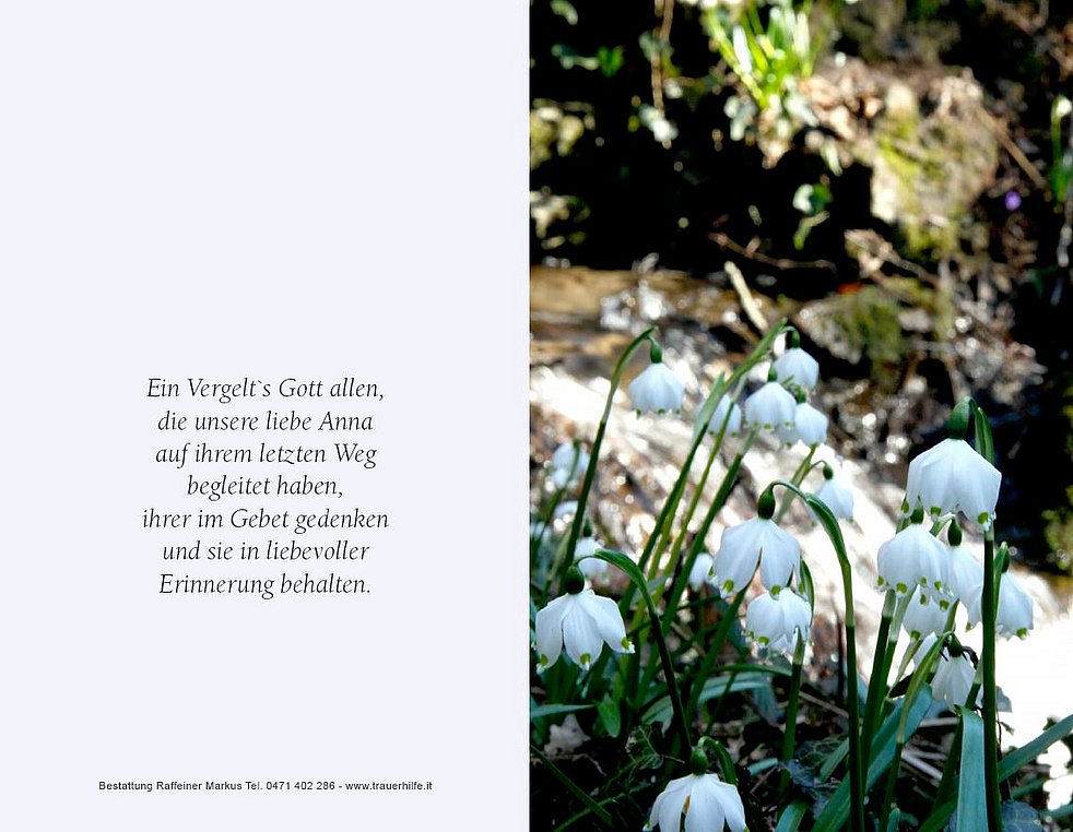 Ein besonderer Dank gilt dem Hausarzt Dr. Walter Insam und allen, die ihr in dieser Zeit der Krankheit beigestanden sind.