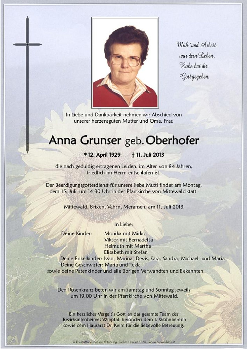Der Beerdigungsgottesdienst für unsere liebe Mutti findet am Montag, dem 15. Juli,