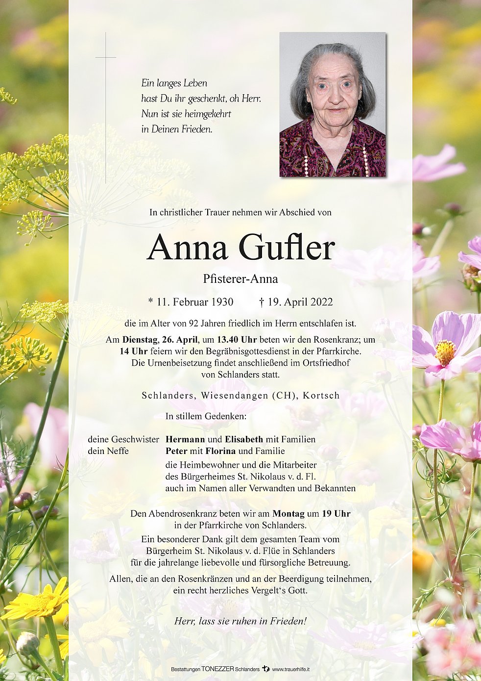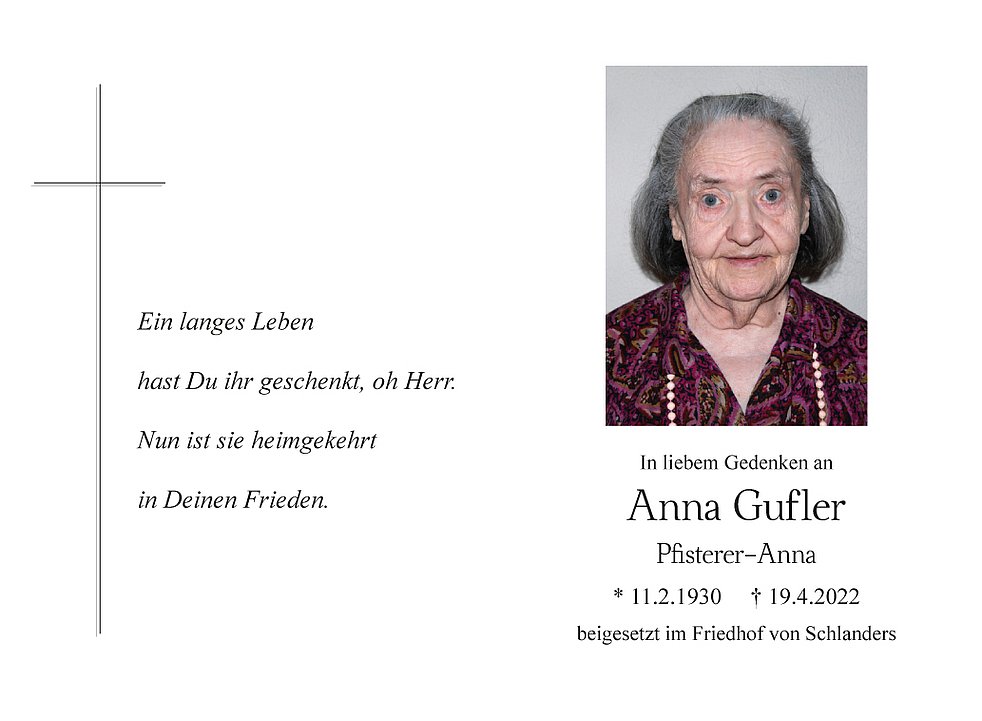 Die Urnenbeisetzung findet anschließend im Ortsfriedhof von Schlanders statt.