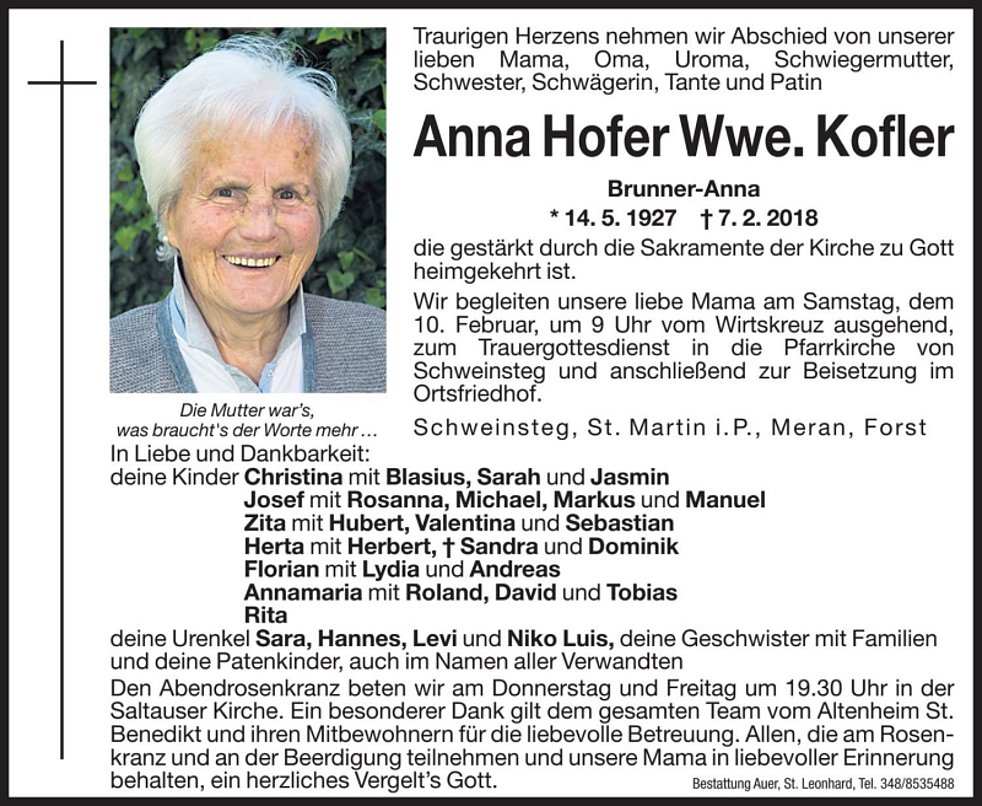 Wir begleiten unsere liebe Mama am Samstag, dem 10. Februar, um 9 Uhr vom Wirts Kreuz ausgehend, zum Trauergottesdienst in die Pfarrkirche von Schweinsteg mit anschließender Beisetzung im Ortsfriedhof.