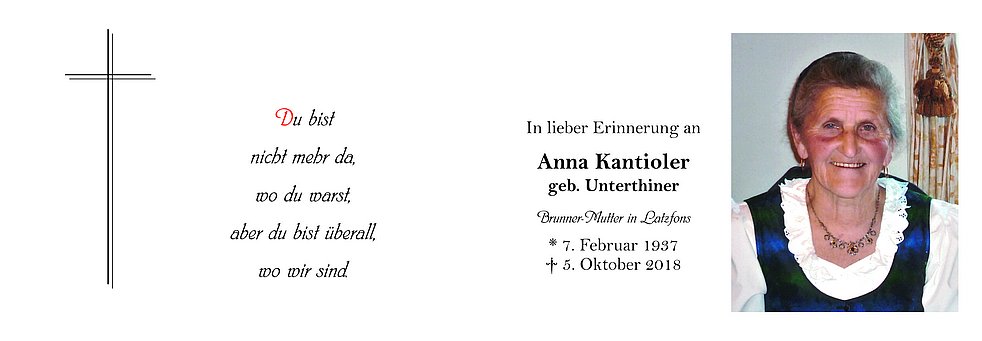 wo um 14.30 Uhr die Einsegnung stattfindet. Anschließend erfolgt der Trauergottesdienst in der Pfarrkirche von Latzfons und die Beisetzung