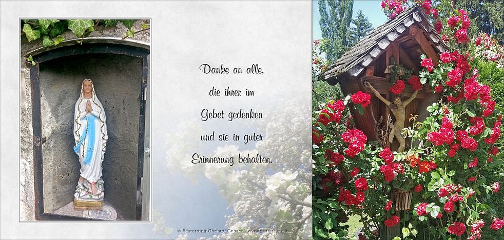 Den Seelenrosenkranz beten wir am Dienstag und am Mittwoch um 19.30 Uhr sowie am Donnerstag um 13.30 Uhr im Trauerhaus.