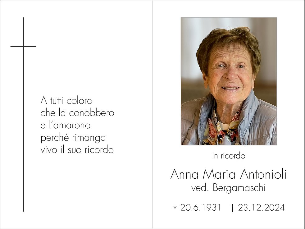 La S. Messa in suffragio con successiva benedizione verrà celebrata venerdì 27 dicembre alle ore 14.00 nella chiesa Cristo Re in Corso Italia a Bolzano.