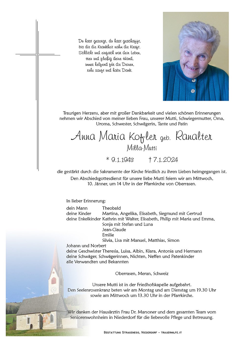 Eure liebe Mutti und Oma , unsere liebe TantAnna wird immer in unsere Herzen bleiben .
