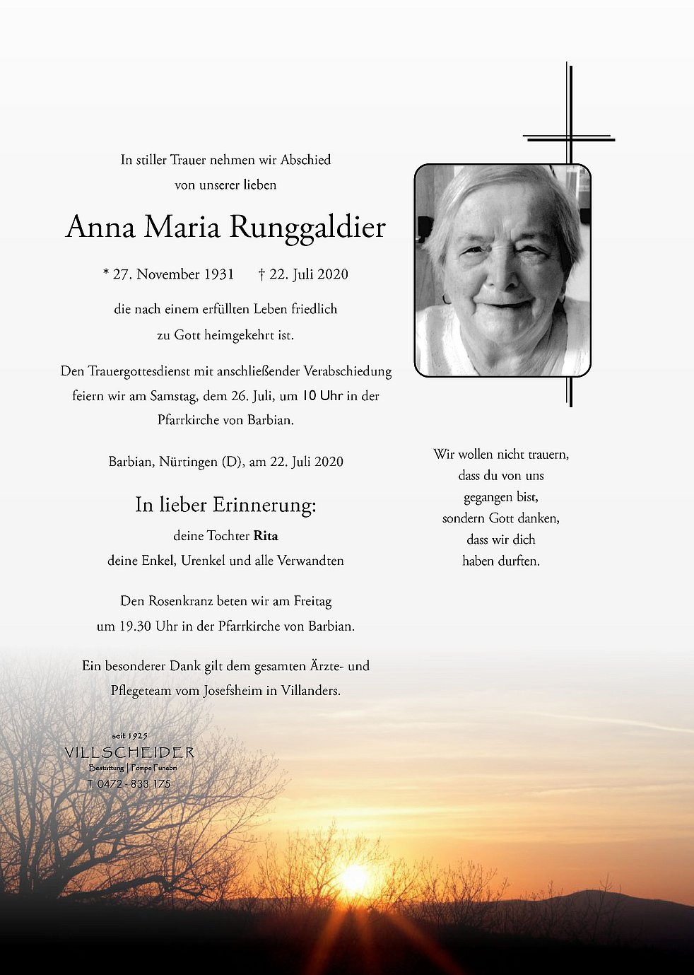 Trauerfeier: 25.07. - 10:00 Uhr Barbian